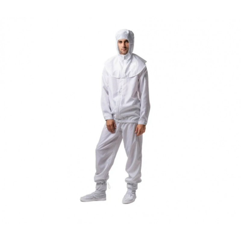 Мужской костюм c капюшоном М-147К состоит из куртки и брюк. Куртка прямого силуэта с капюшоном, заменяющим головной убор. На передних полочках сверху донизу предусмотрена фронтальная застежка-молния с внешней и внутренней пылезащитной планкой. На левой полочке, в шве втачивания рукава, вшит знак ЕРА. Без карманов.