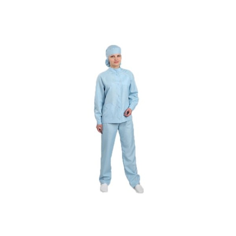 В составе углеродная токопроводящая нить, обеспечивающая антистатические свойства для работы с электронными компонентами. Ткань костюма подходит для использования в чистых помещениях класса 6 ИСО и ниже, для снижения отделения ворса все соединительные швы окантовываются безворсовой бейкой.